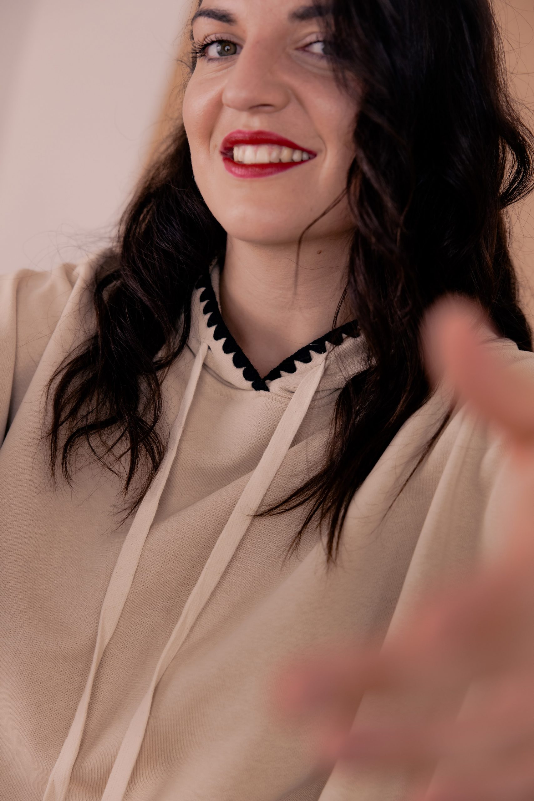 Sweat beige détails noirs.